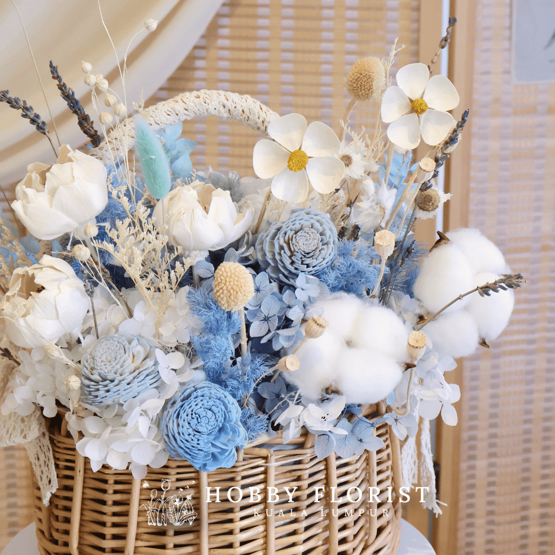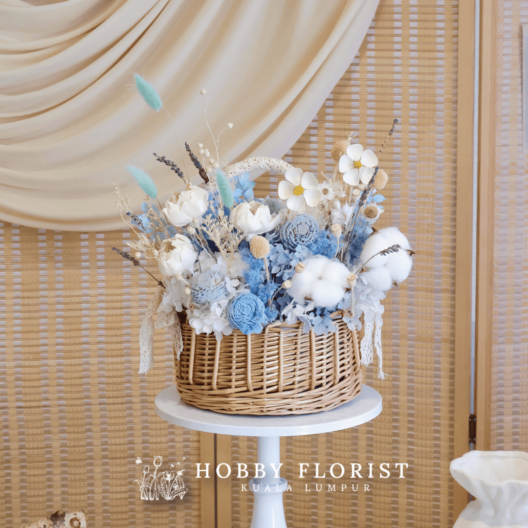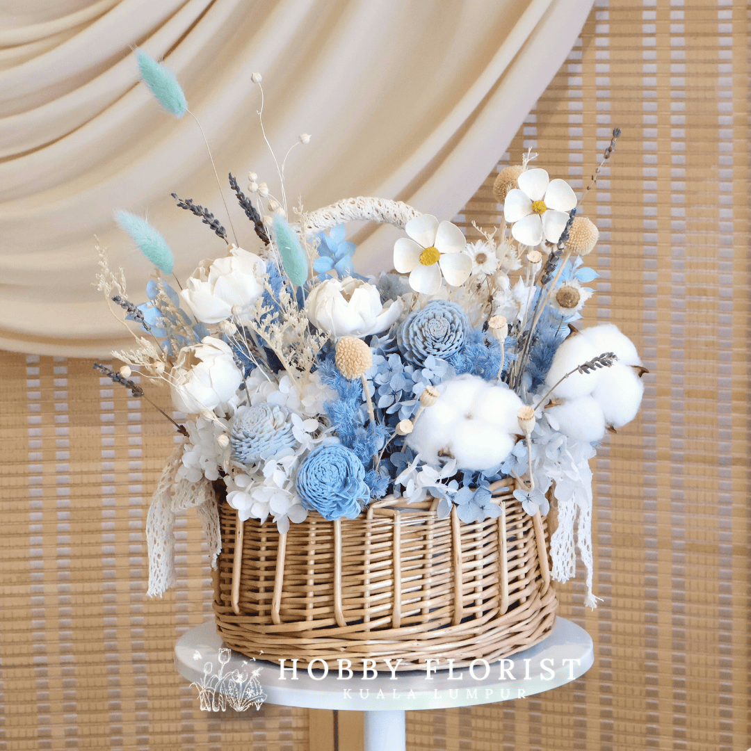 Premium Sky Blue Preserved Flower Basket