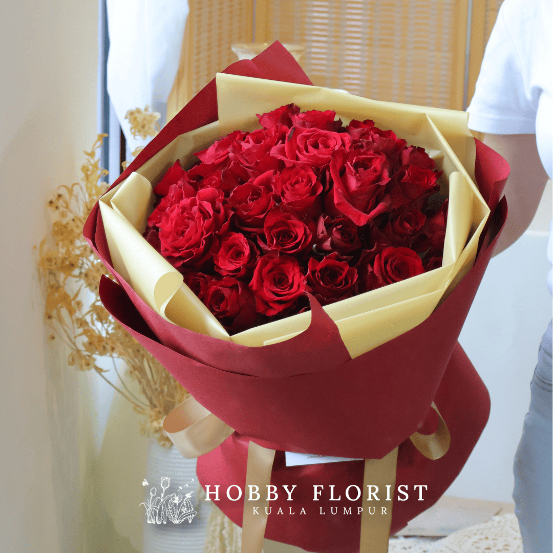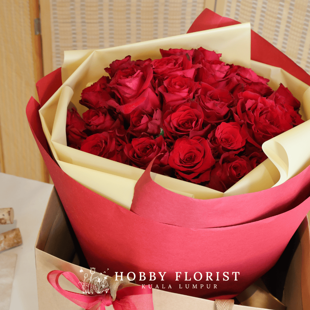 Featuring: An assortment of 30 x Stalk red Rose Bouquet. (subjected to availability)