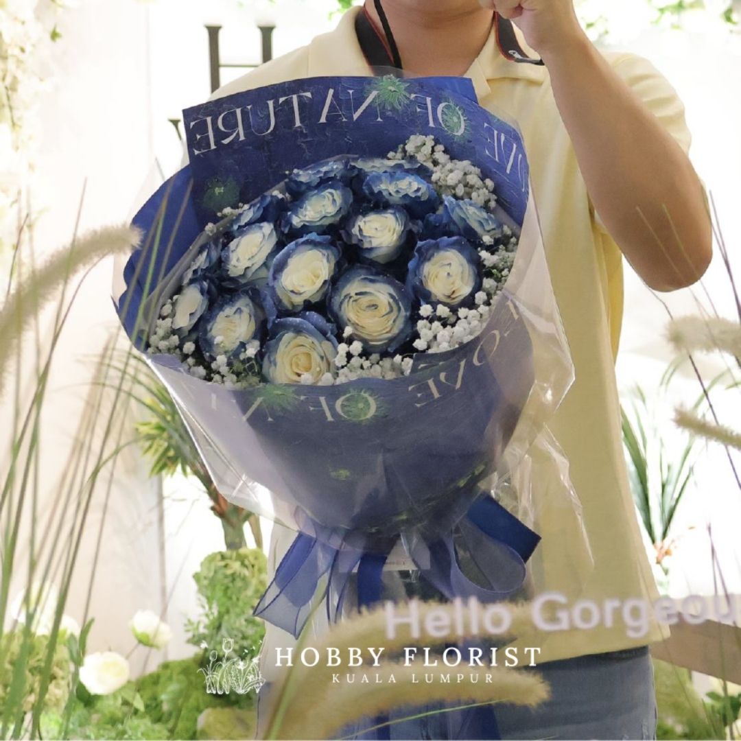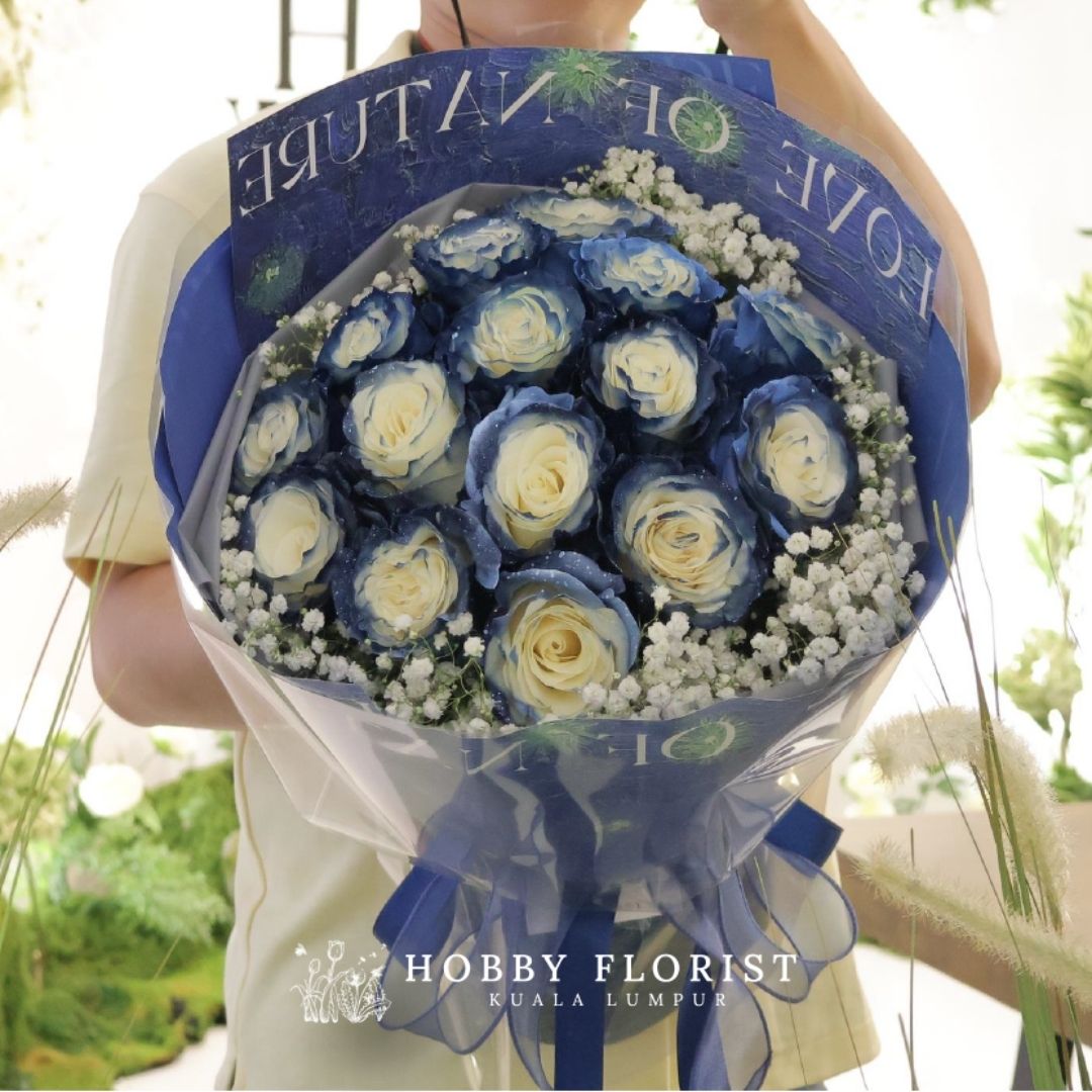 Featuring: 14-15 stalks of fresh Ecuador Roses (Watercolour Blue with White Speckles)