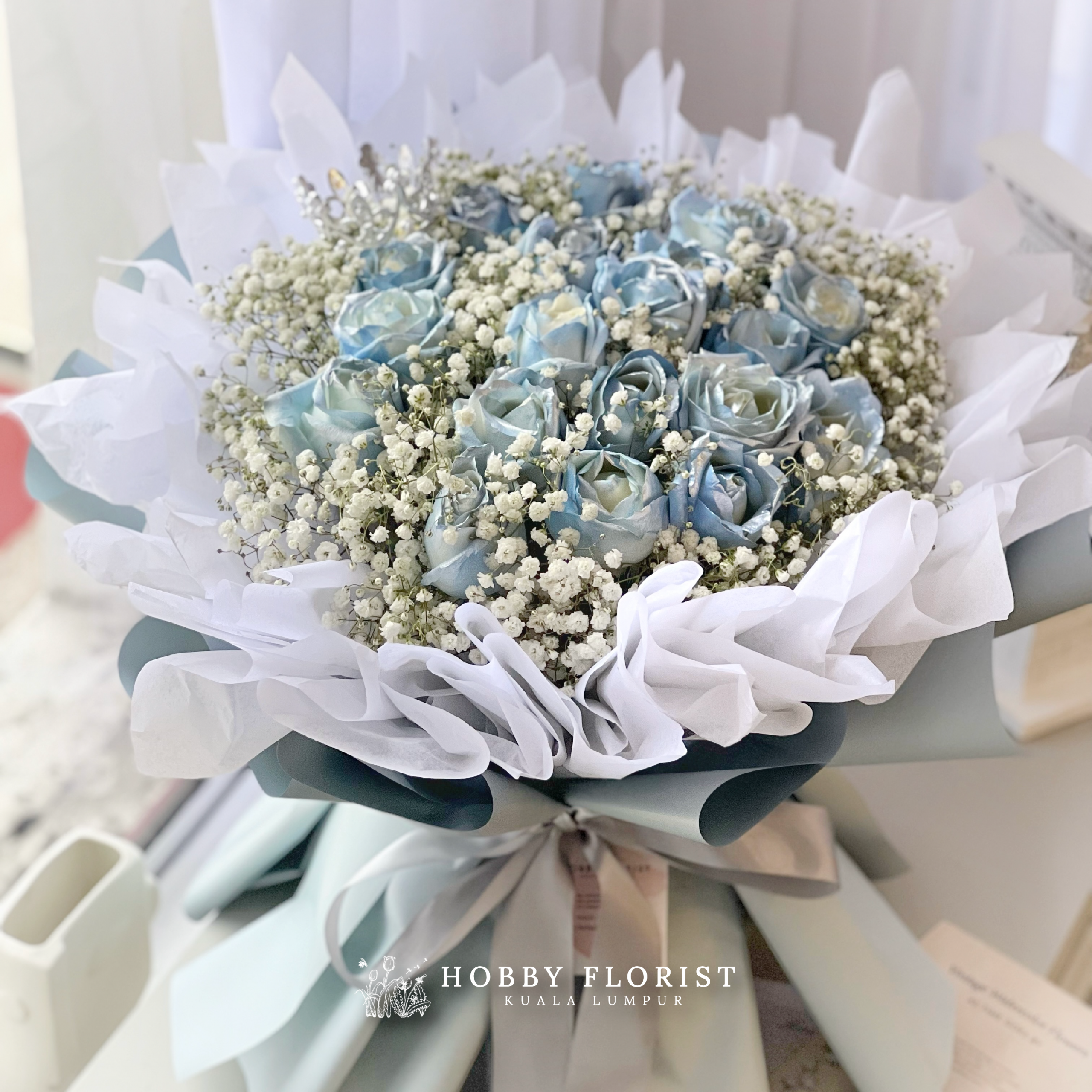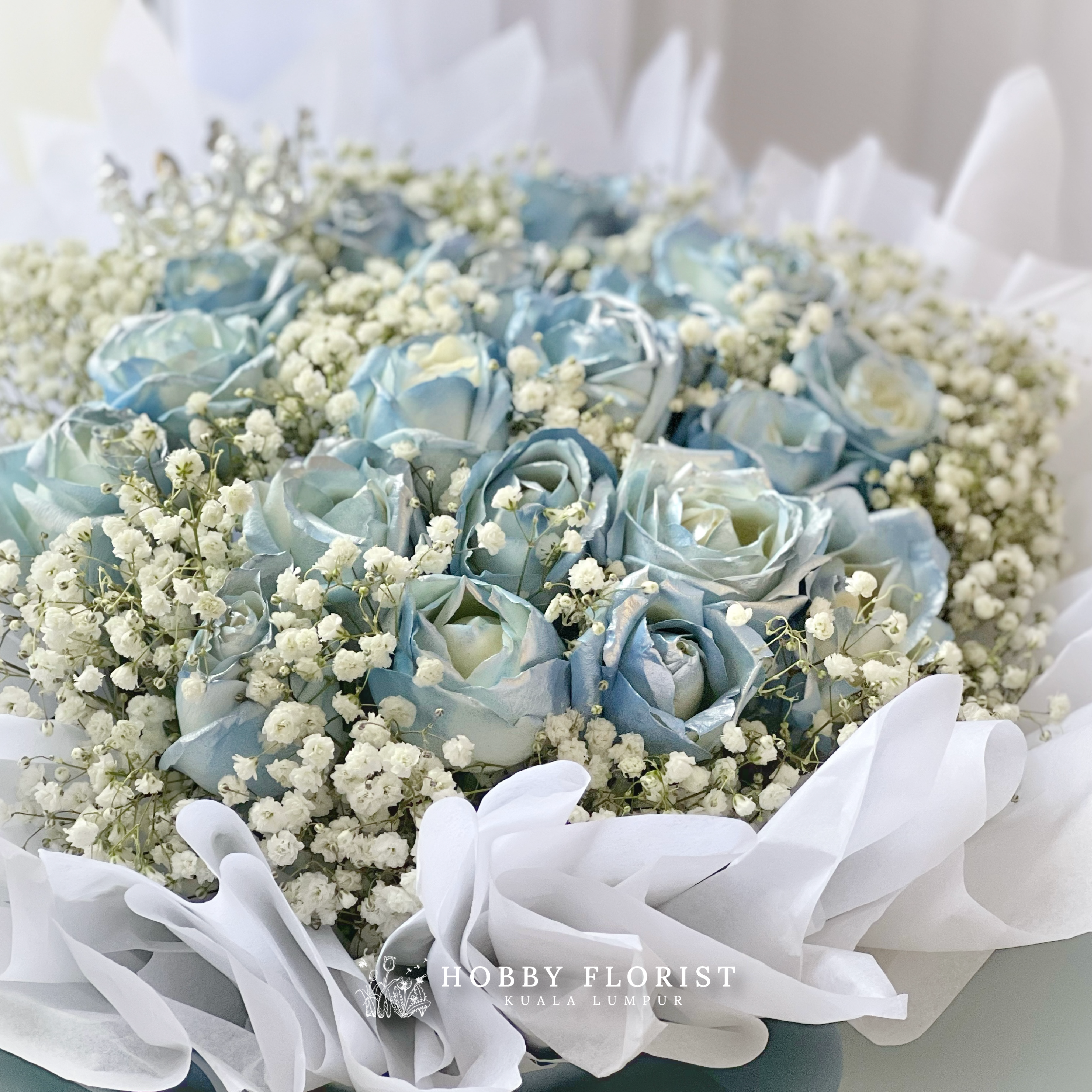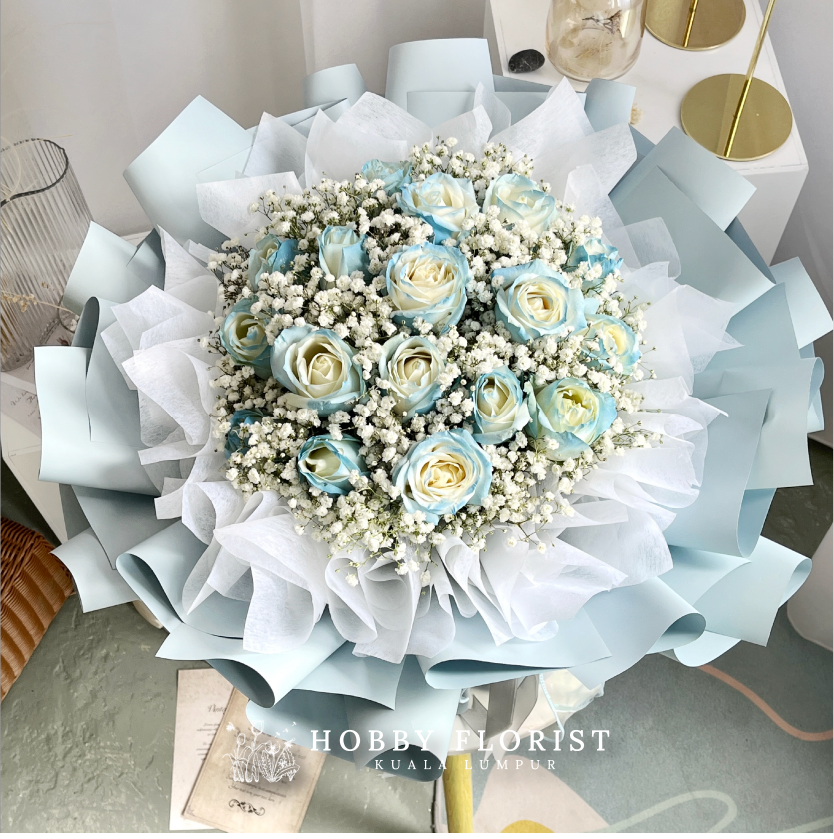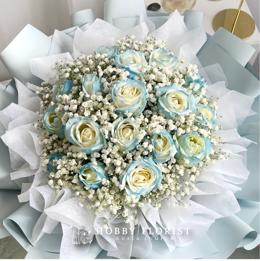 Featuring: 13-15x Stalks of Imported Roses & Baby Breath Blooms