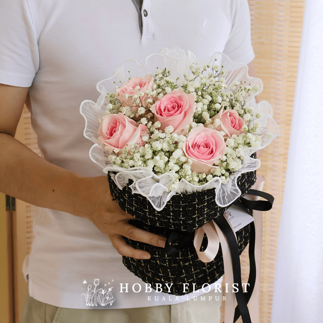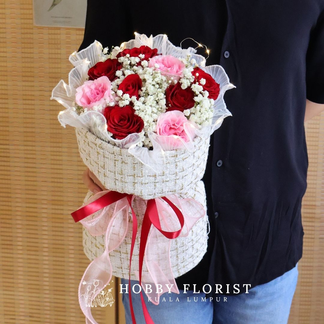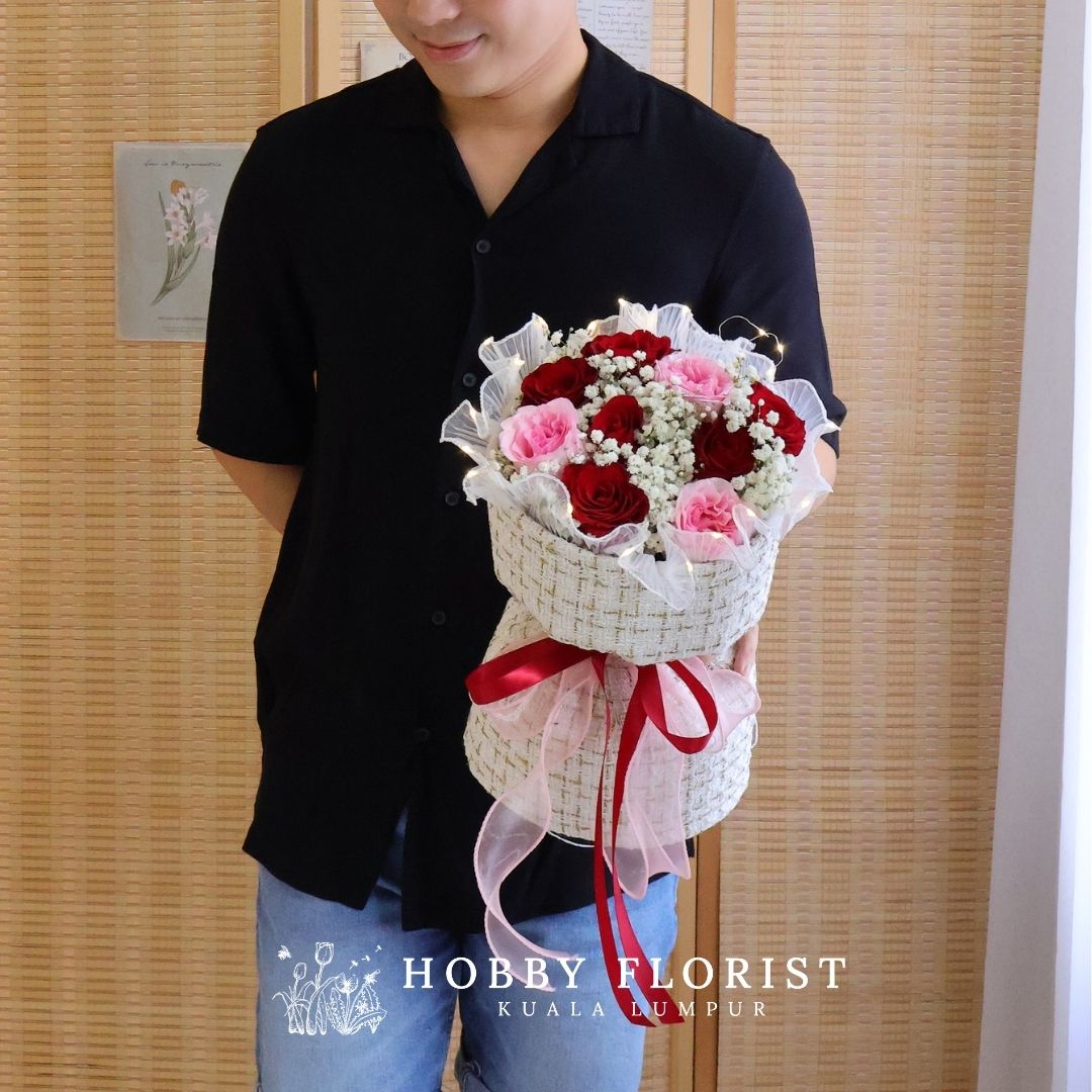 Featuring: An assortment of 5-6 x stalks of Red Rose & Baby’s Breaths (subjected to availability)